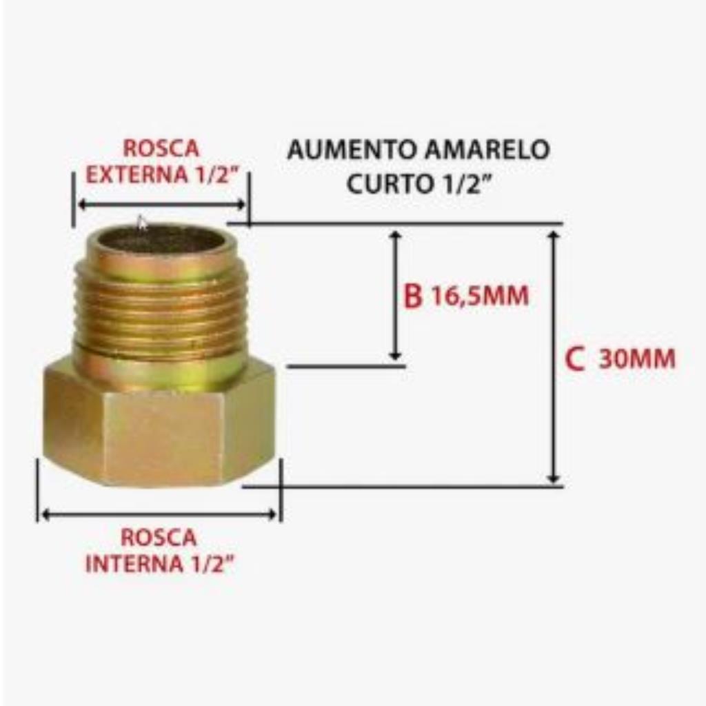 AUMENTO P/TORNEIRA CURTO 1/2 30MM ZAMAK AMARELO GARDEN