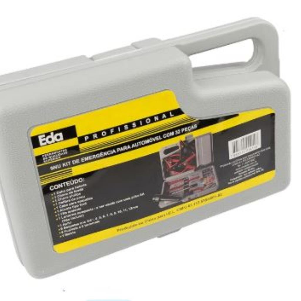 Conteúdo - 1 Maleta para transporte das peças. - 1 Cabo para bateria 50A. - 1 Chave de fenda. - 1 Chave Phillips. - 1 Calibre de pneu. - 1 Cabo para soquetes. - 1 Alicate tipo ford. - 1 Fita isolante. - 1 Lanterna compacta, usa pilha AA (não inclusa). - 1 Apito. - 6 Terminais. - 8 Fusíveis. - 9 Soquetes de encaixe 1/4": 4, 5, 6, 7, 8, 9, 10, 11 e 12 mm.